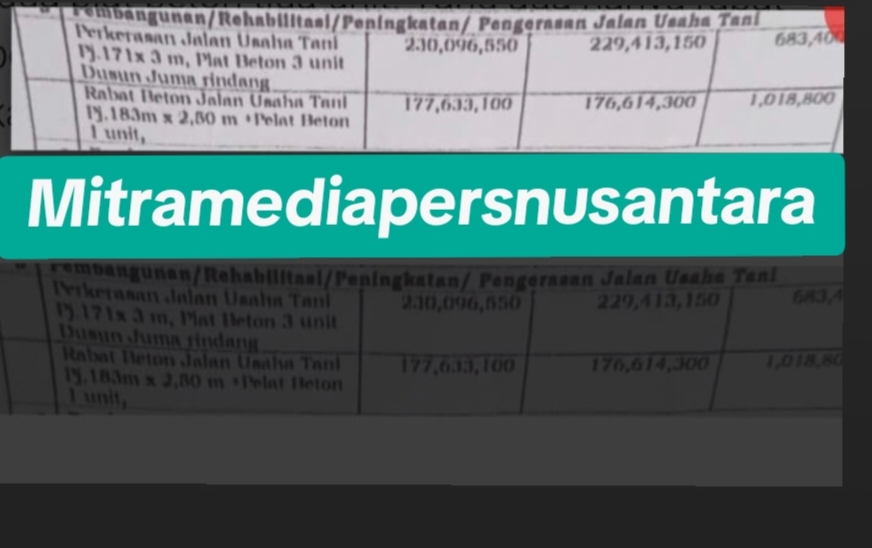 Proyek yang tertuang dalam APBDes 2023 tersebut tercatat menelan anggaran ratusan juta rupiah. Ironisnya, hingga kini tidak ada satu pun bukti pekerjaan berupa pengerasan jalan tani maupun pembangunan plat beton sebagaimana dilaporkan. Fakta ini memperkuat dugaan bahwa laporan pembangunan tersebut hanyalah rekayasa administrasi alias proyek fiktif.