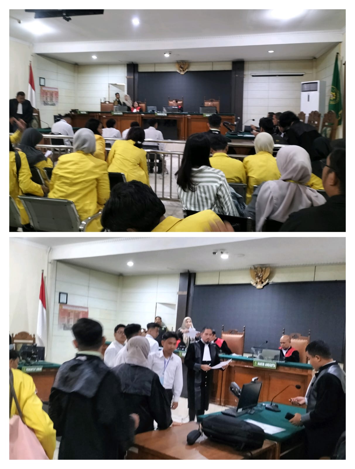 Pemantauan media, mahasiswa hadir memberikan dukungan terhadap 5 mahasiswa terdakwa kasus Aksi May Day 2025 (27/8/2025).