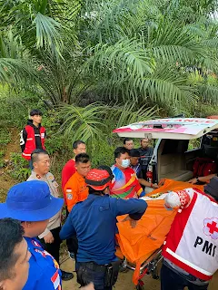 Selanjutnya, tim gabungan membawa jenazah dengan berjalan kaki menuju puncak bukit sebelum diteruskan ke Posko Hulu Peniti. Perjalanan dari lokasi kejadian (TKP) menuju posko memakan waktu kurang lebih 2,5 jam dengan kondisi medan yang cukup berat.