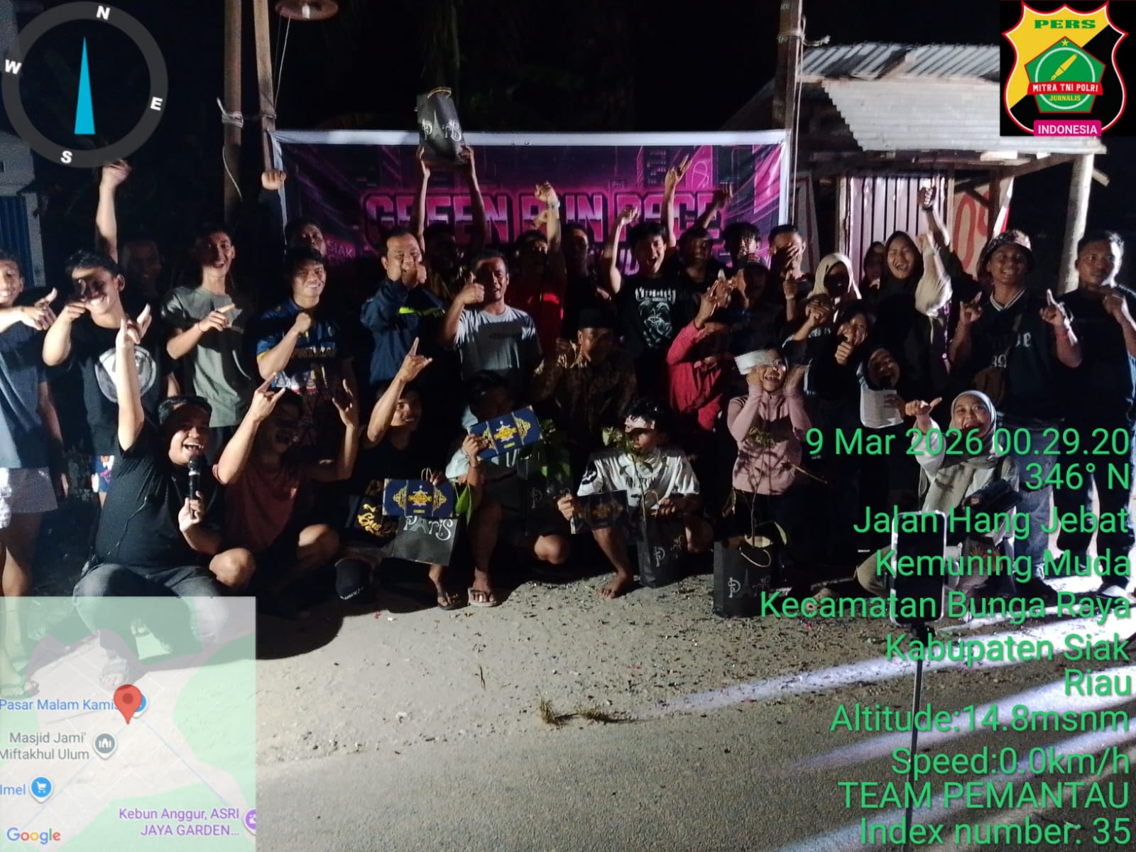 Siak(RIAU)Mitratnipolri.id//Pemuda kemuning Muda mengadakan Green Run Race agar bisa menjalin silaturahmi pemuda antar desa yang berada di kecamatan Bunga Raya, Minggu(08/03/2026) malam