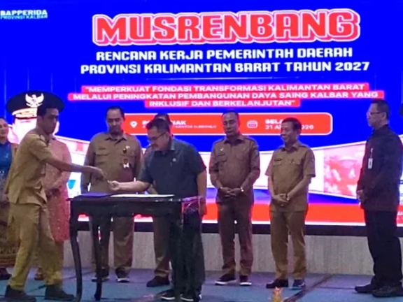 Mitratnipolri.id. Pontianak, Kalbar. – Ketua DPRD Kalimantan Barat menghadiri Musyawarah Perencanaan Pembangunan (Musrenbang) RKPD Provinsi Kalimantan Barat Tahun 2027 yang digelar di Aula Garuda Kantor Gubernur Kalbar, Selasa (21/4/2026).