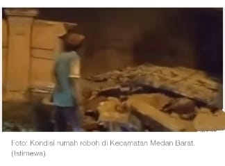 Satu unit rumah di Jalan Sei Deli Link IV, Sei Silalas Kecamatan Medan Barat tiba-tiba roboh. Video peristiwa robohnya rumah tersebut viral di media sosial.
