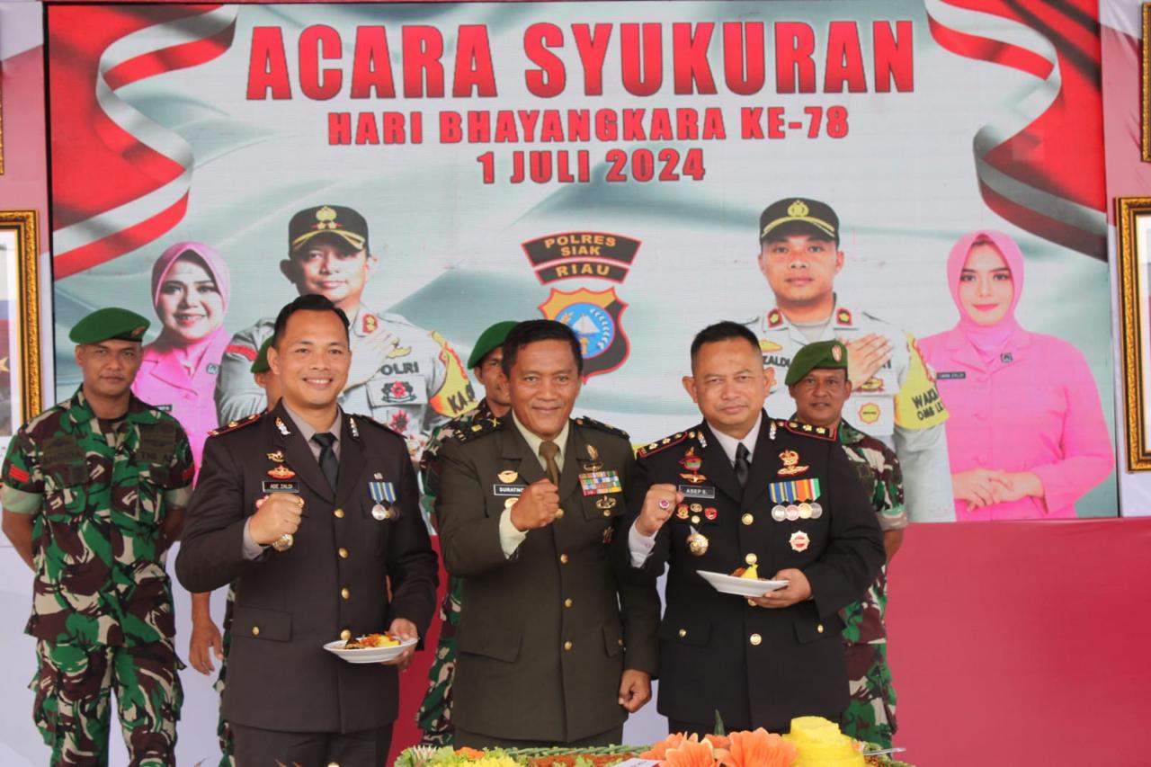 Siak (01 Juli 2024)pukul 08.00 WIB, telah dilaksanakan Upacara HUT Bhayangkara ke-78 Tahun 2024 di lapangan Tugu depan Istana Siak, Jln. Sultan Syarif Kasim, Kel. Kampung Dalam, Kec. Siak, Kab. Siak. Upacara ini dihadiri oleh berbagai tokoh penting dan perwakilan dari berbagai instansi.