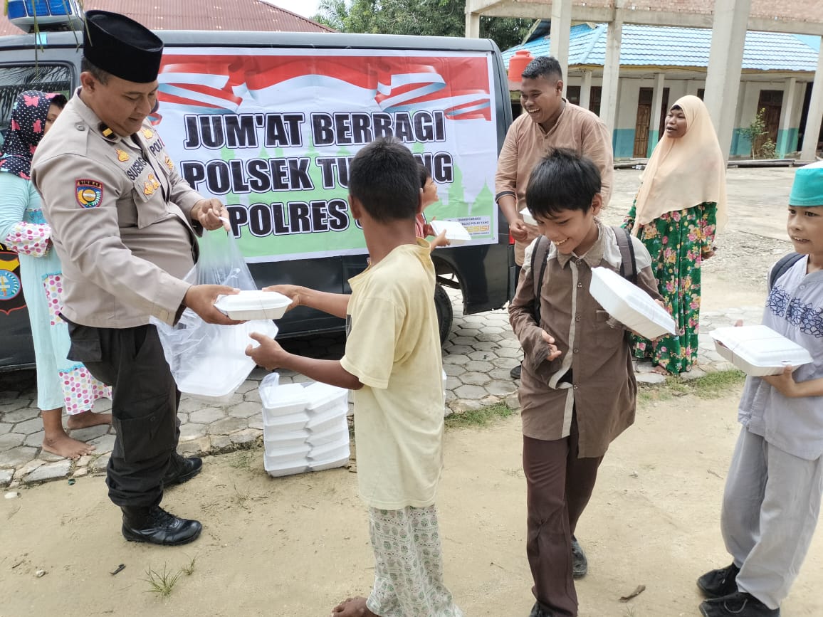 Perawang, Kapolsek Tualang Kompol Arry Prasetyo.SH.MH didampingi Panit Binmas Ipda Sugeng Mishari. SH dan Kasi Humas Aiptu Jonas melakukan kegiatan Indahnya berbagi di hari Jumat, (8/3/24) pagi.