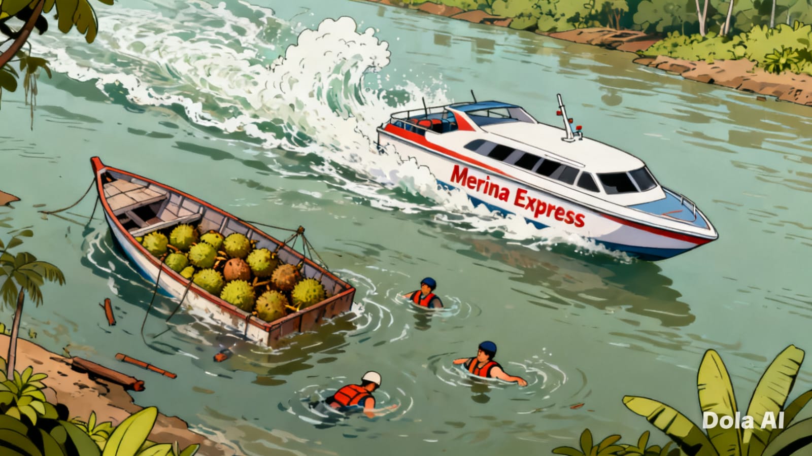 Kapal mengalami kendala pada gerbox di sekitar Patok 50 TR 06 Desa Tanjung Wangi. Saat itu, tim kru telah melambaikan tangan untuk meminta speedboat Marina Express yang melaju dengan kecepatan tinggi menurunkan kecepatannya.