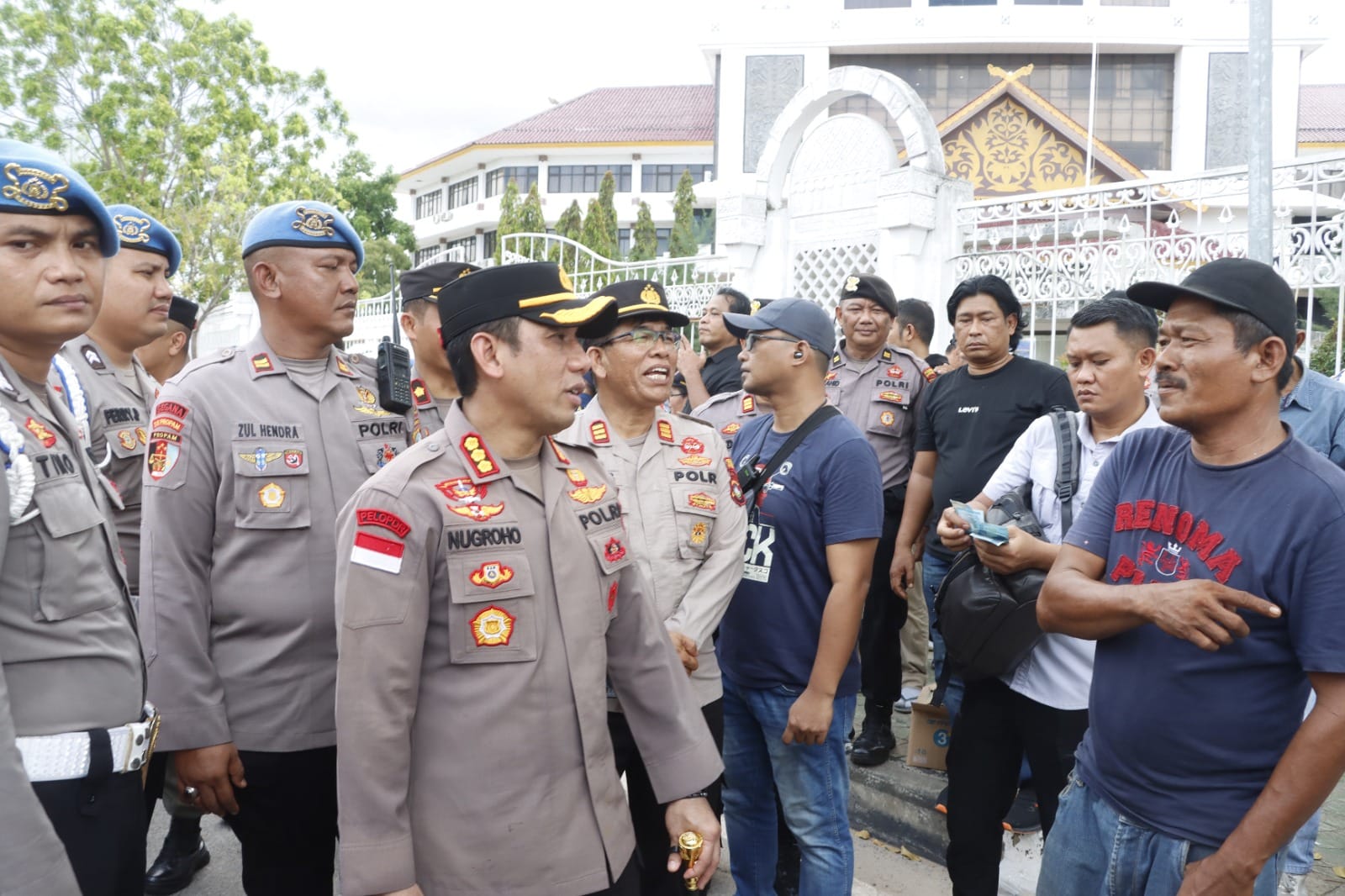 Aksi Buruh tersebut di sambut oleh Kapolresta Barelang, Kombes Pol Dr. Nugroho Tri Nuryanto, S.I.K., M.H., Walikota Batam Muhammad Rudi, Dandim Kolonel Inf Roy Chandra Sihombing, S.IP, Sekda Kota Batam Jefridin Hamid, KA Satpol PP Sdr Imam Tohari, Kadisnaker Sdr. Rudi Sukyakirti, S.H, M.H, PJU Polresta Barelang.