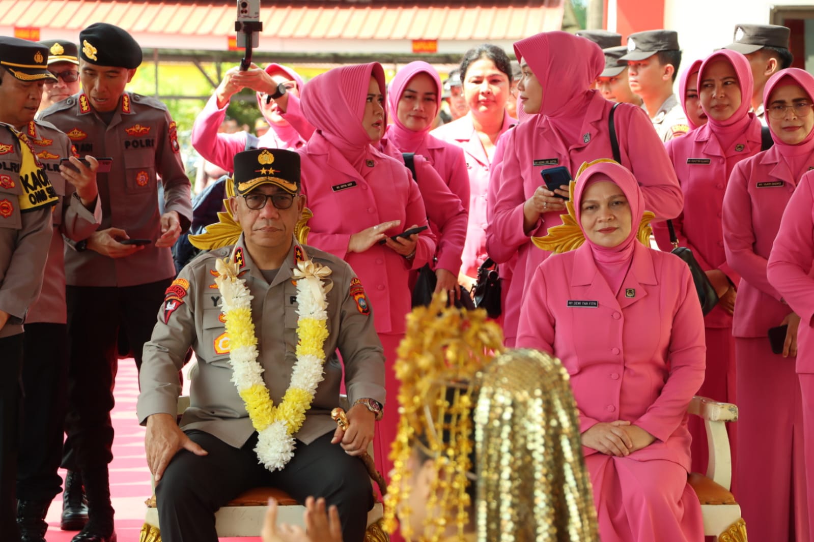 Sebelum memasuki Mapolres Bintan, Kapolda Kepri beserta rombongan disambut dengan pengalungan Bunga, pencak silat, jajar hormat dan tari persembahan.