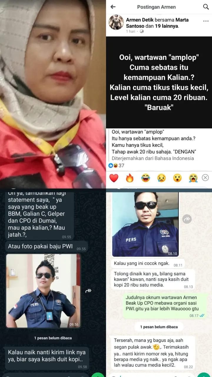 Dari berbagai Postingan di Media Sosial (Medsos) Pribadinya (Armen Detik) selalu mengeluarkan Ujaran Kebencian dan Caci Maki bahkan juga kerap Merendahkan Profesi Insan Pers dengan sebutan Wartawan Amplop Level 20 Ribu.