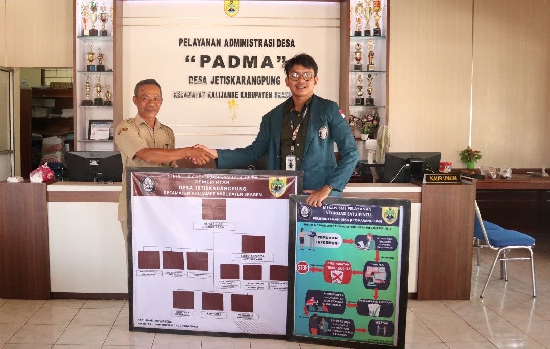 Mitratnipolri.id || SRAGEN– Program Kuliah Kerja Nyata (KKN) yang dilaksanakan oleh Universitas Diponegoro untuk tahun 2024, di Desa Jetiskarangpung, Kecamatan Kalijambe, Kabupaten Sragen, Jawa Tengah, salah satu peserta mahasiswa yang KKN adalah Nathanael Roy Martua adalah Mahasiswa Fakultas Hukum Universitas Diponegoro, dia telah mencapai dua inisiatif penting dalam upaya meningkatkan efisiensi pemerintahan desa dan memperbaiki sistem pelayanan publik. Kegiatan ini tidak hanya fokus pada aspek administratif, tetapi juga mencakup ranah hukum untuk memastikan kepatuhan dan keberlanjutan sistem yang dibangun.