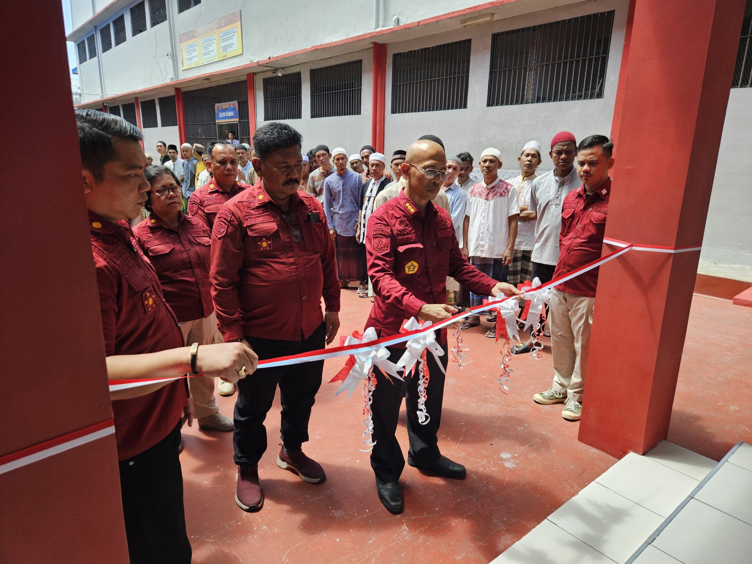 Selanjutnya dilakukan pemotongan pita oleh Plt Kalapas Pancur Batu, Kriston Napitupulu sebagai pertanda sah telah dilakukan peresmian Masjid At Taubah Lapas Pancur Batu. Kegiatan pun dilanjutkan dengan melaksanakan Sholat Jumat berjamaah di Masjid At Taubah.