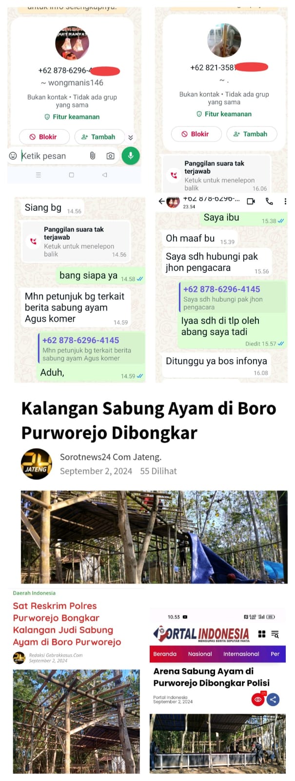 Mitratnipolri.id || Purworejo – Adanya seseorang mengirim berita Judi Sabung Bori Fighter Camp digerebek Polisi menimbulkan tanda tanya dikalangan masyarakat setempat. Pasalnya Pengerebekan itu tidak diketahui masyarakat setempat.03/02024