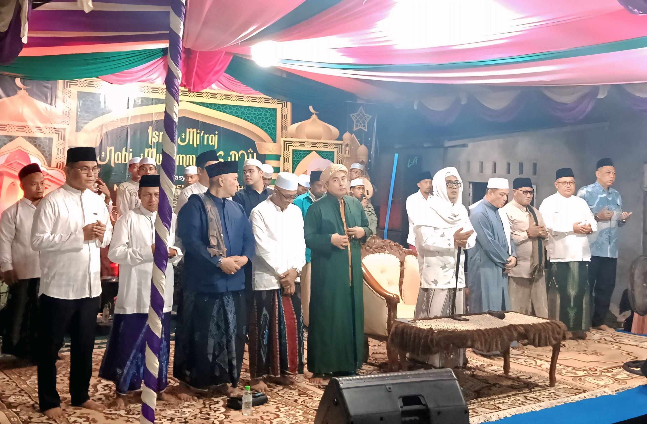 Kegiatan keagamaan tersebut berlangsung dengan penuh khidmat dan menghadirkan *KH. Fauzan Badruddin*, penceramah asal Pulau Garam, Madura, Jawa Timur, yang menyampaikan tausiyah tentang makna spiritual Isra Mi’raj serta pentingnya menjaga shalat dan akhlak dalam kehidupan bermasyarakat.