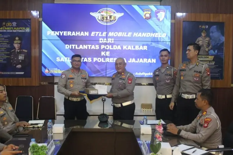 Penyerahan perangkat tersebut dilakukan pada Kamis, 16 April 2026, pukul 14.00 WIB, di Ruang Rapat Ditlantas Polda Kalbar. Distribusi dilakukan oleh Dirlantas yang diwakili Wakil Direktur Lalu Lintas kepada 14 Satlantas Polres jajaran, Satuan PJR, serta Subdit Gakkum Ditlantas Polda Kalbar.