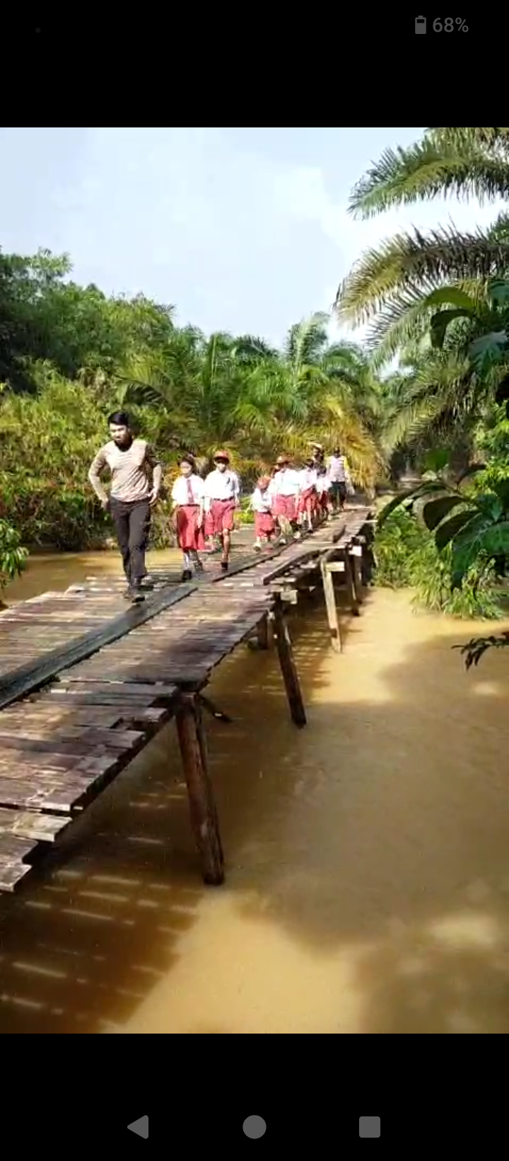 Perlu diketahui bahwa jembatan ini merupakan Satu-satunya akses penghubung warga dan para siswa di desa Anshiap menuju sekolahnya.