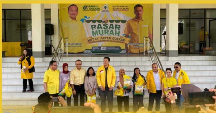 Bazar pasar murah di buka sekretaris DPD Partai Golkar Ir.H. Prabasa Anantatur, MH, didampingi dewan pertimbangan Didi Haryono, bendahara Ichfany dan pengurus DPD lainnya.