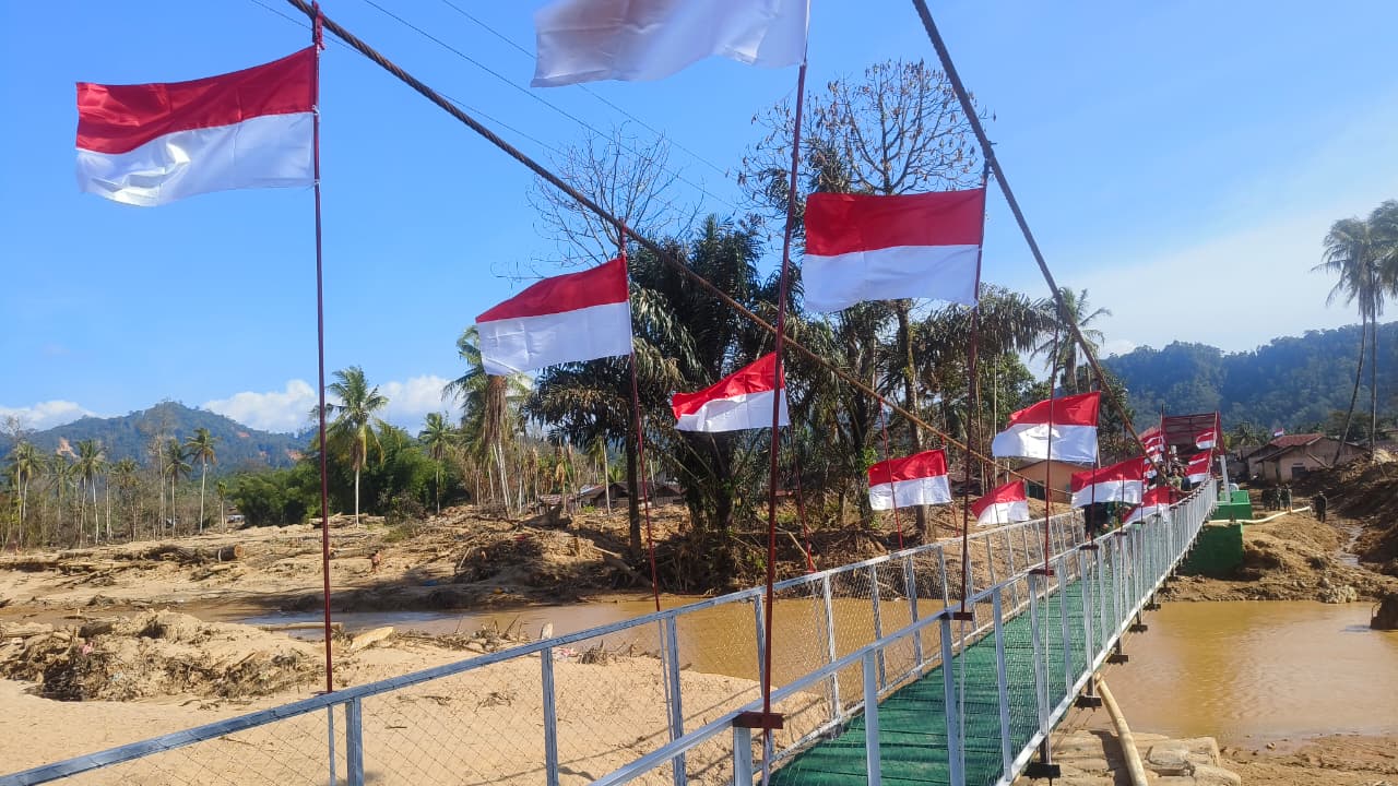 Mitratnipolri id. Tapanuli Tengah, –Satgas Penanggulangan Bencana Alam (Gulbencal) Kodam I/BB melalui Kodim 0211/TT berhasil menuntaskan pembangunan Jembatan Perintis Garuda yang menghubungkan Lingkungan I, Kelurahan Bonalomban, ke Lingkungan III, Kelurahan Tukka, Kecamatan Tukka, Kabupaten Tapanuli Tengah, Minggu (1/3/2026).
