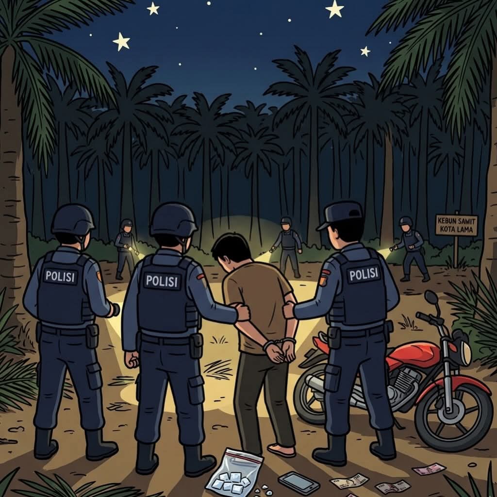 Informasi dirangkum Jum”at (10/4/2026).Penangkapan dilakukan sekitar pukul 00.10 WIB di area kebun kelapa sawit yang berada di Kelurahan Kota Lama, Kecamatan Kunto Darussalam, Kabupaten Rokan Hulu.