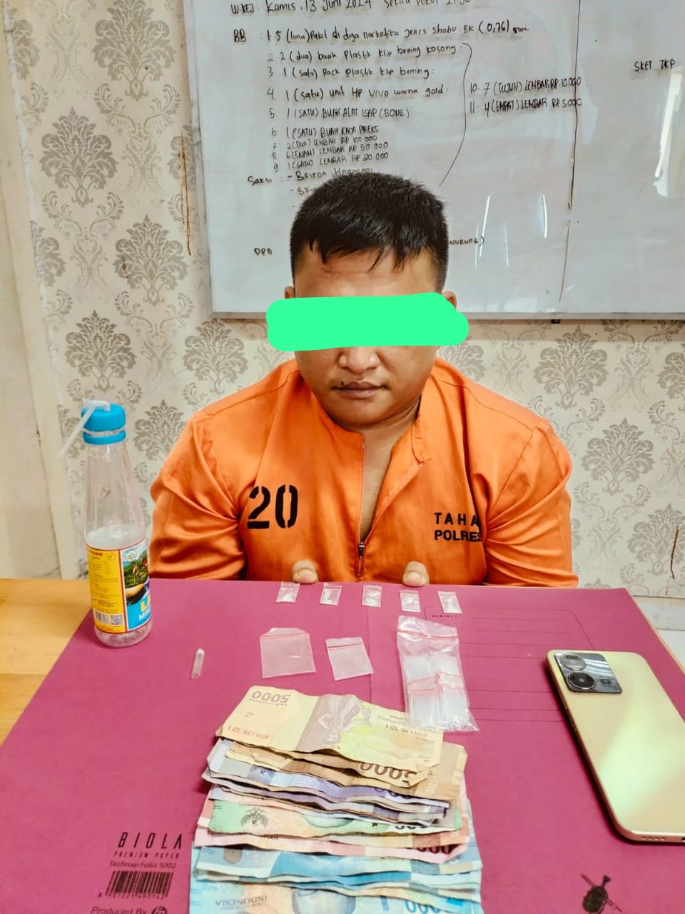 BTL(39) diamankan Satres Narkoba Polres Siak dengan barang bukti 5 (lima) paket Narkotika jenis Shabu berat kotor 0,76 (nol koma tujuh puluh enam) gram.